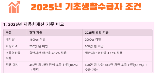 - 수급자 선정 후에도 소득 및 재산이 일정 기준을 초과하면 자격이 박탈될 수 있습니다.