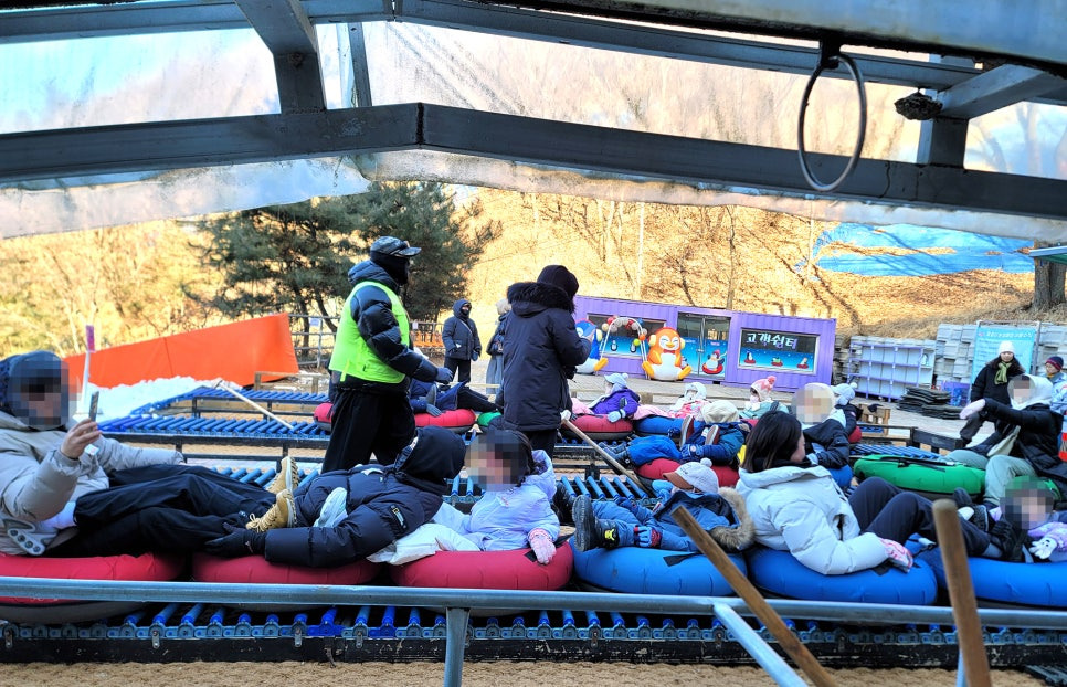 특히 방송에서 강조된 명물은 국내 유일의 ‘줄줄이 눈썰매’입니다. 여러 대의 썰매를 기차처럼 연결해 한 번에 함께 타는 방식으로, 가족이나 친구들이 모두 한 줄로 앉아 내려오는 모습이 무척 인상적입니다.