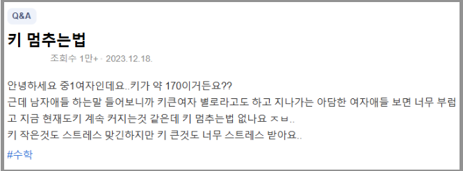 "키가 너무 빨리 크고 있는데 멈추게 하는 방법이 없을까요?",