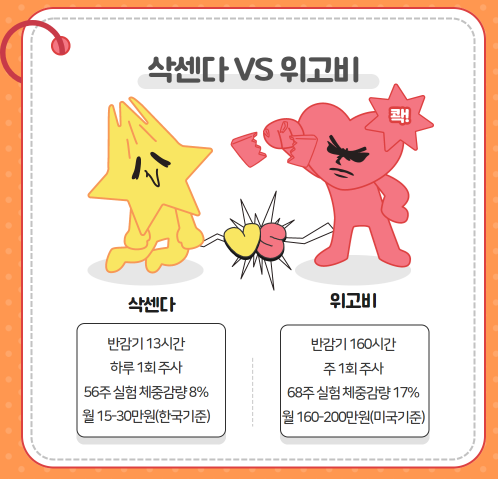 * 위고비 전 세대의 약이라고 할 수 있는 삭센다와 비교해 보겠습니다.