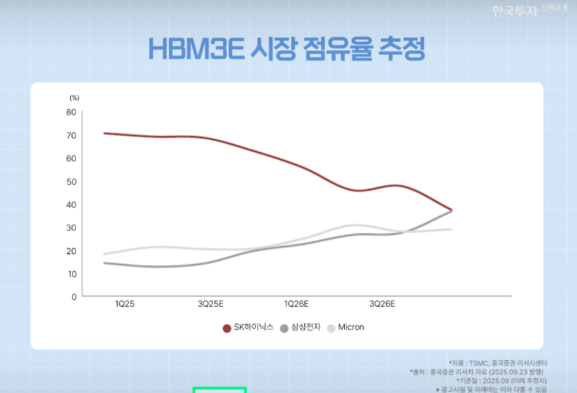 현재 SK하이닉스가 HBM 부분에서 앞서 있지만, 삼성전자의 대규모 설비 투자와 공정 최적화는 중·장기적으로 큰 반전 가능성을 가지고 있습니다.