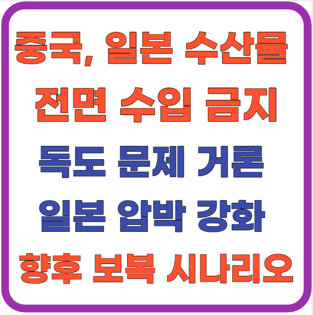 중국, 일본 수산물 전면 수입 금지-독도 문제 거론, 일본 압박 강화, 한국에 미칠 영향, 향후 보복 시나리오(+ 희토류, 관광제한,대만해협 등)