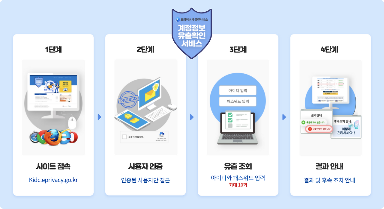 이 서비스는 정부에서 직접 운영하는 만큼 신뢰할 수 있고, 다크웹까지 조회해 내 계정이 유출되었는지 바로 확인할 수 있어 많은 분들이 찾고 계십니다.