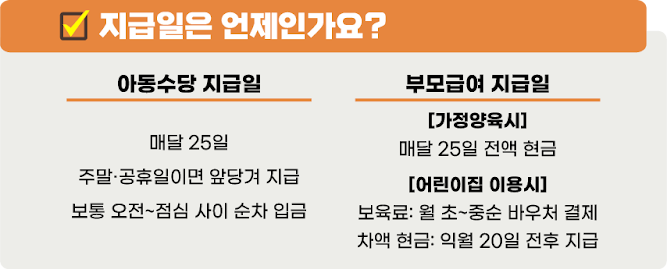 : 수당은 반드시 아동 본인 또는 보호자의 명의 계좌로만 입금됩니다.