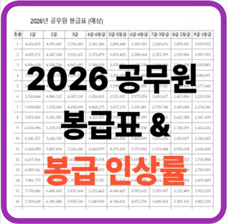 2026 공무원 봉급(+인상률,봉급표,3.5%,내년,2025년과 비교)