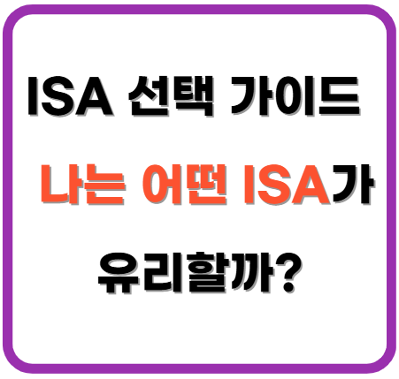 👉 정리하면, ISA 선택은 나이·소득·직업·투자 성향에 따라 달라집니다.
