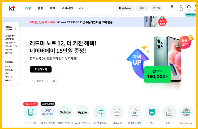 - KT 공식 홈페이지 또는 KT 앱 접속